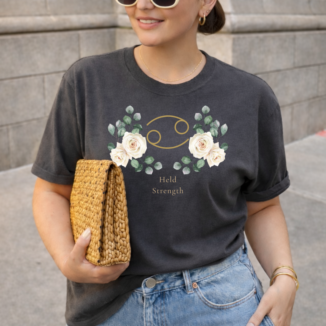 Cancer Zodiac Botanical Tee - Held Strength